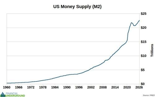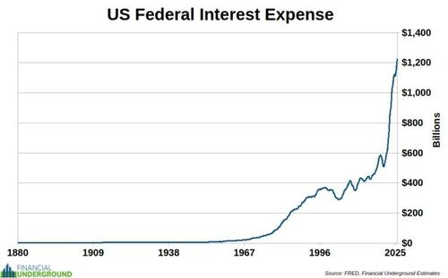The skyrocketing interest expense forces the Fed to implement interest cost control policies, which inflate the money supply. These include buying Treasuries with money the Fed creates out of thin air and similar measures.