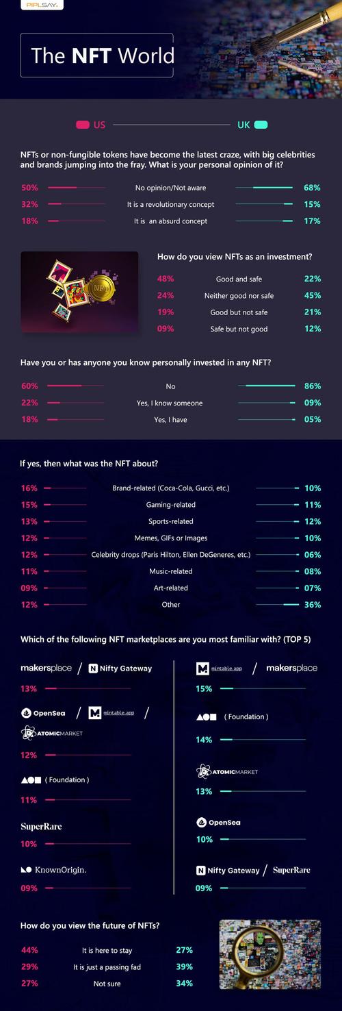 With NFT sales surging to a new high this year, the hype over this latest digital phenomenon shows no sign of declining. From becoming a gamechanger for the art community when it first burst onto the scene, NFTs today are taking other businesses by storm, featuring in sports and gaming and even embraced by retail brands like Nike, Coca-Cola, and Gucci. However, despite its massive growth, the concept is still in its early stages and comes with a few red flags. With people willing to spend big money on these unique collectibles, how will the NFT market pan out in the days to come? What’s in demand, and where is all the action happening? Piplsay polled 30,870 Americans and 9,170 Britons to get some insights on this.