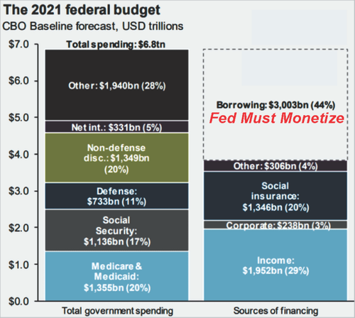 As shown, the 2021 budget will push the current deficit towards $4-Trillion requiring the Federal Reserve to monetize at least $1 Trillion of that issuance per our previous analysis.