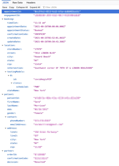 The extent of the data left open on the testing registration platform includes full name, date of birth, phone number, email address, mailing address, and gender identity. Recode said with a few clicks in a browser's developer tools panel, anyone with access to an active page can find this sensitive information.