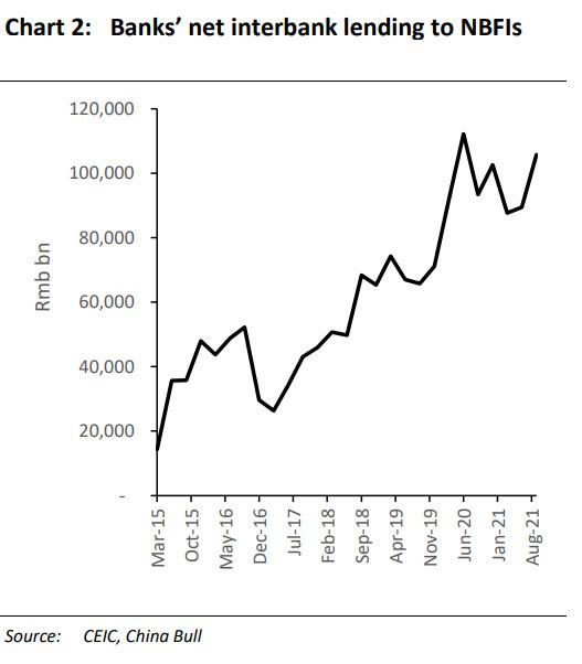 Banks’ interbank lending to non-bank financial institutions rose to elevated levels last quarter, another sign of financial speculation, according to China Bull Research.