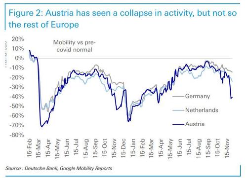 To be sure, Austrian mobility has declined significantly with Germany also drifting lower. So where restrictions have been imposed there has been a consequence.