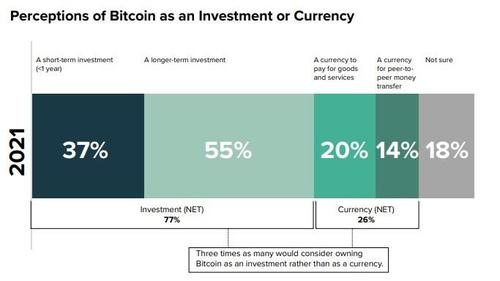 Moreover, Grayscale notes that their survey shows more than half (55%) of investors perceive Bitcoin as a long-term play that fits into their overall investment strategy.