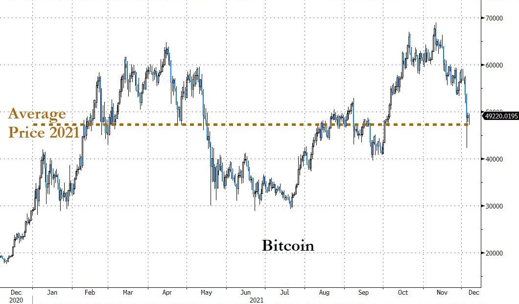 In fact, Bitcoin is currently trading almost exactly at its average price for 2021...