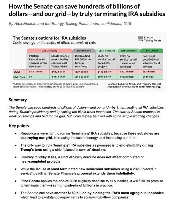 Republicans were right to run on "terminating" IRA subsidies, because these subsidies are destroying our grid, increasing the cost of energy, and increasing our debt.