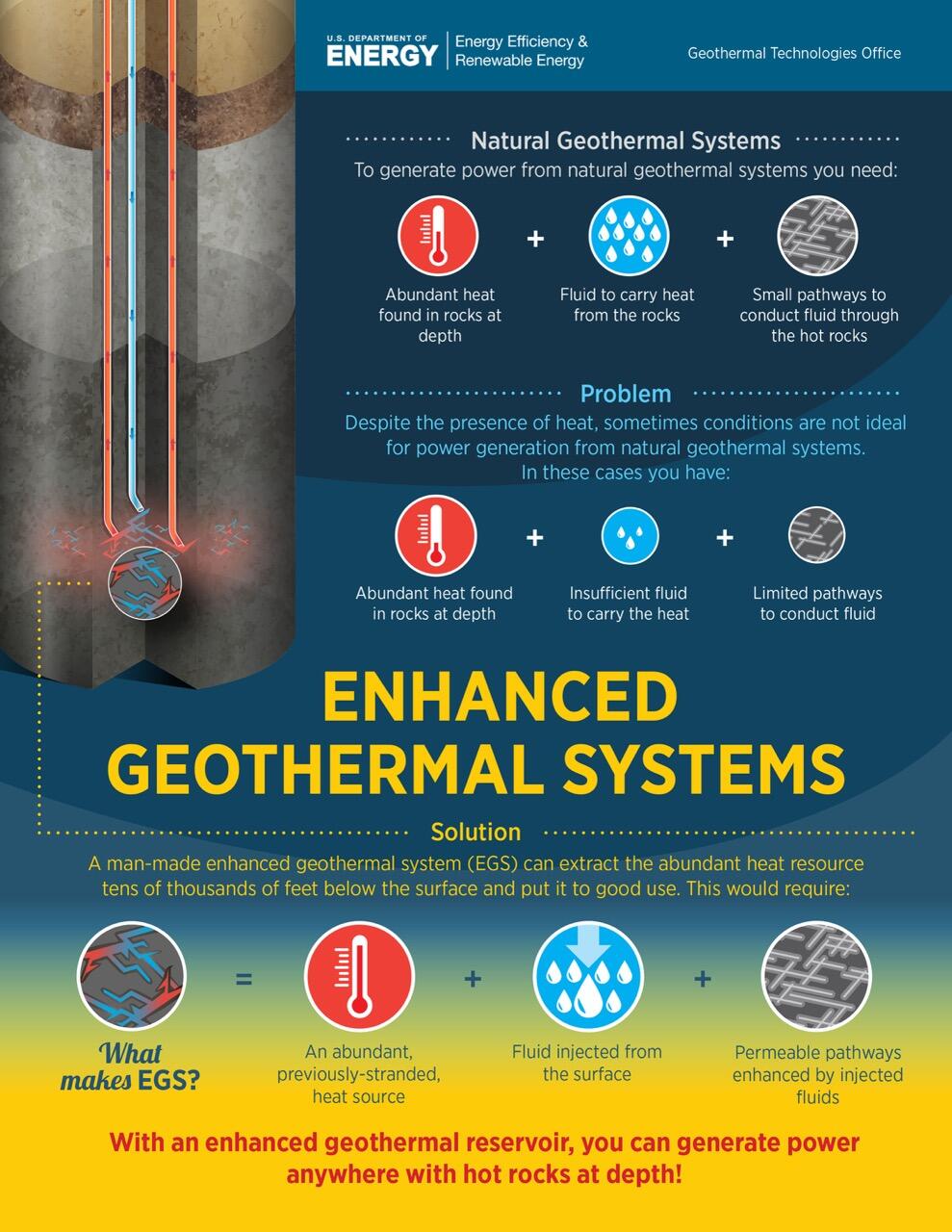 The program targets field-scale demonstrations of enhanced geothermal systems (EGS) for electricity generation, along with drilling to characterize and confirm hydrothermal and next-gen prospects nationwide.